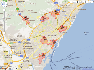 Arran de l’aparició a la xarxa d’una aplicació anomenada Isochronous Application v0.8 [2], que permet fer càlculs d’isocrones [3] sobre Google Maps, uns quants Geoinquiets vam fabular amb la possibilitat de generar mapes de qualitat de diversos serveis públics, amb l’afany de poder entendre millor les reivindicacions dels usuaris i treballadors però també per comprendre l’abast de les retallades aplicades per les administracions.